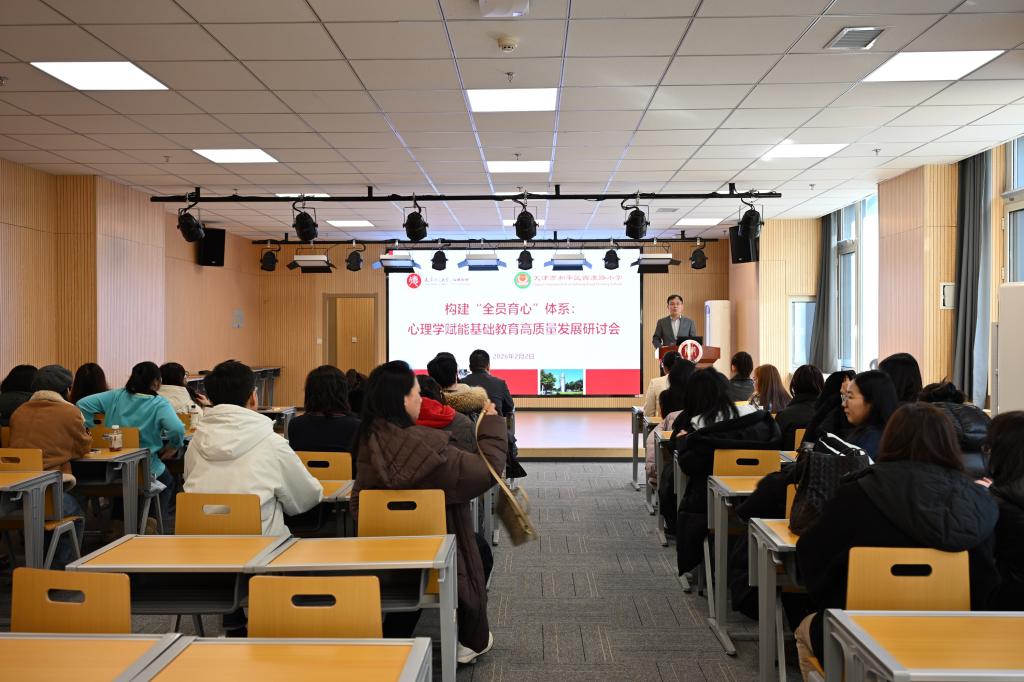2月2日,“构建‘全员育心’体系:心理学赋能基础教育高质量发展”研讨会在天津师范大学举办。本次活动由天津师范大学心理学部与西康路小学联合举办,活动汇聚高校心理学专家、小学管理者及一线教师30余人,通过专题报告、实践分享与专题研学等多种形式,共同探索心理健康教育全员、全过程、全方位融入基础教育教学的有效路径,为构建高质量育人体系注入“心”动力。