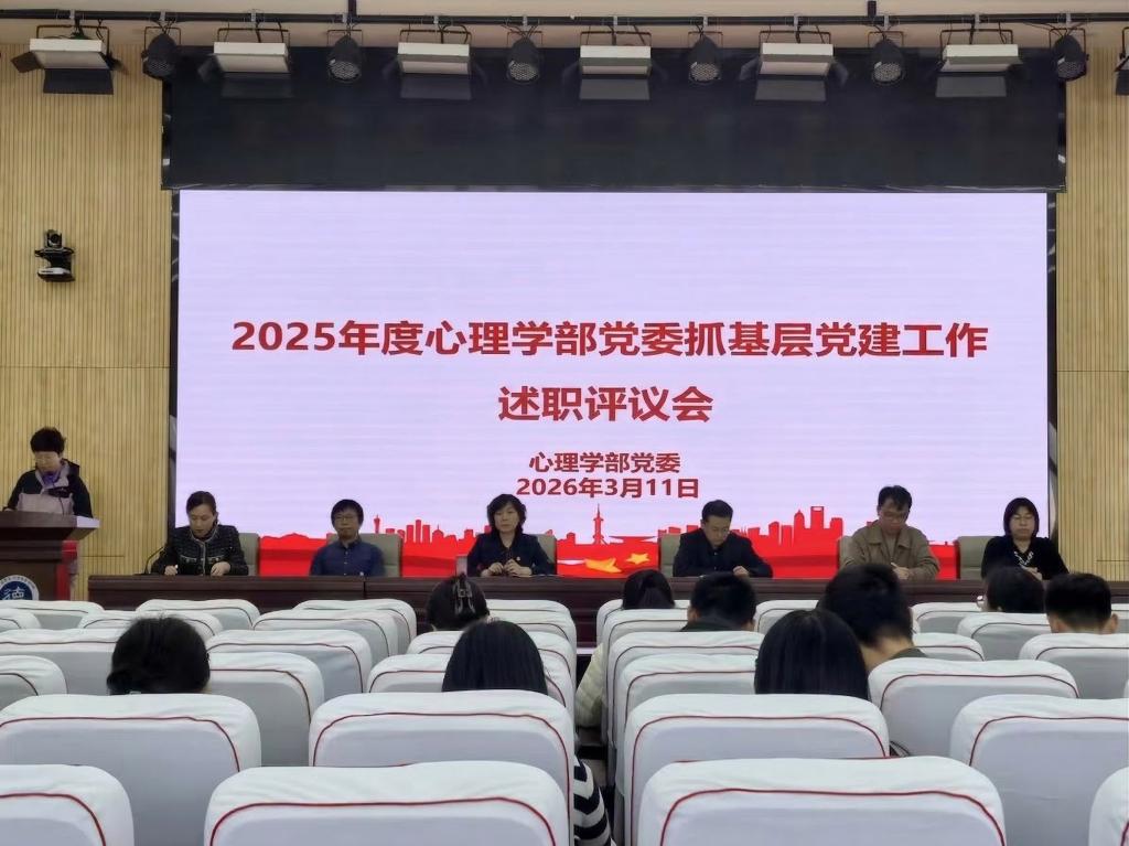 3月11日下午,心理学部党委召开2025年度党支部书记抓党建工作述职评议会。学部党委领导班子成员、党支部书记、党员师生代表、民主党派和群众代表共46人参加会议。学部党委副书记、纪委书记史君主持会议。