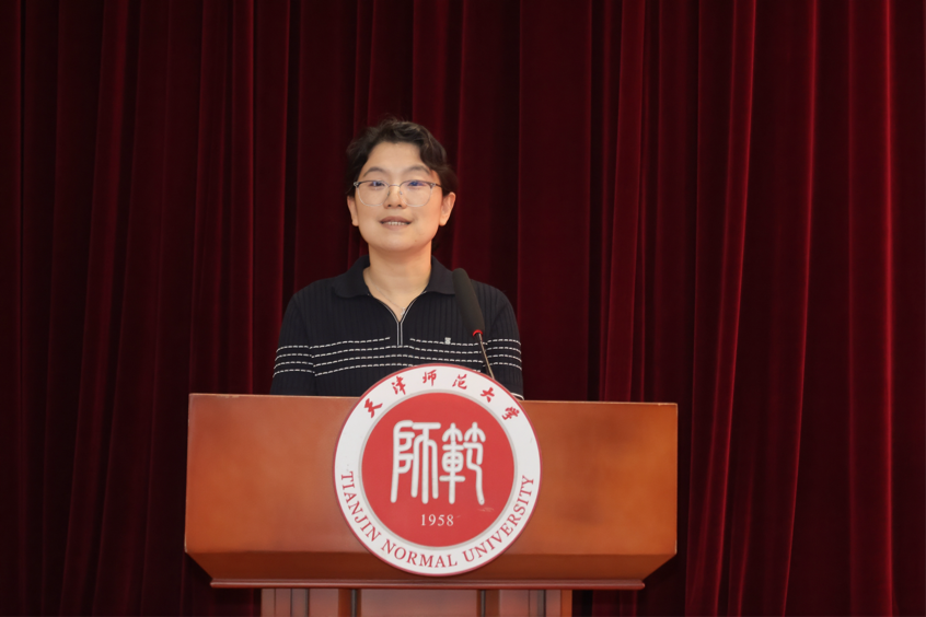 教师代表梁菲菲欢迎全体新同学加入心理学部这个温暖、真诚的大家庭。她以“何为‘爱国’、何以‘尊师’、如何‘勤奋’、怎样‘认真’”四个问题为引,向同学们展示了心理学人应有的品格和态度,并祝愿新同学们未来既能饱览心理科学的万千气象,也能淬炼出“人以德立”的赤诚之心,成长为一个有理想、有本领、有担当的心理学人!